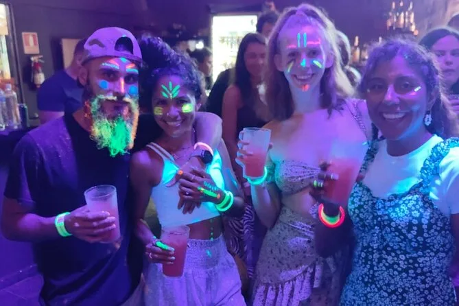 Sua noite começa com drinks ilimitados das 21h às 21h30, jogos de beber e pintura no rosto para esquentar, além de acessórios para animar ainda mais. Você terá entrada grátis em quatro locais diferentes — incluindo um clube de três andares — e um shot de boas-vindas em cada parada (shots generosos!). Os guias mantêm a energia até 1h; depois, quem ainda tiver pique pode dançar até 3h.