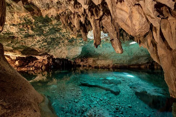 Você vai explorar as antigas ruínas de Tulum com um guia local, fazer snorkel nos recifes coloridos do Caribe e se refrescar nadando em um cenote na selva rodeado de estalactites. Inclui transporte do hotel, equipamento e almoço com tacos — prepare-se para risadas, pele salgada e momentos que vão ficar na memória.