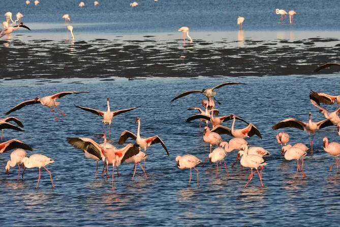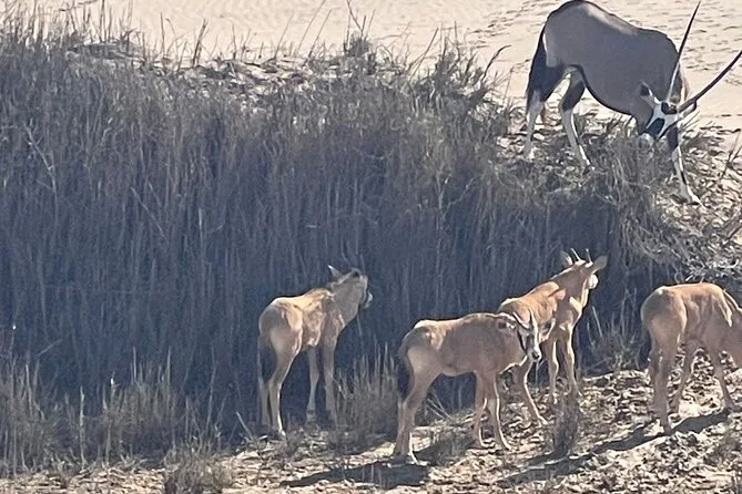 Você vai sentir o lado selvagem da Namíbia enquanto atravessa dunas gigantes onde o deserto encontra o mar em Sandwich Harbour. Veja nuvens de flamingos nos pântanos de Walvis Bay, sinta o sal no ar perto da maior mina de sal da África e troque histórias com seu guia enquanto desfruta de lanches acima das ondas. Não é só paisagem—é uma experiência que fica na pele.