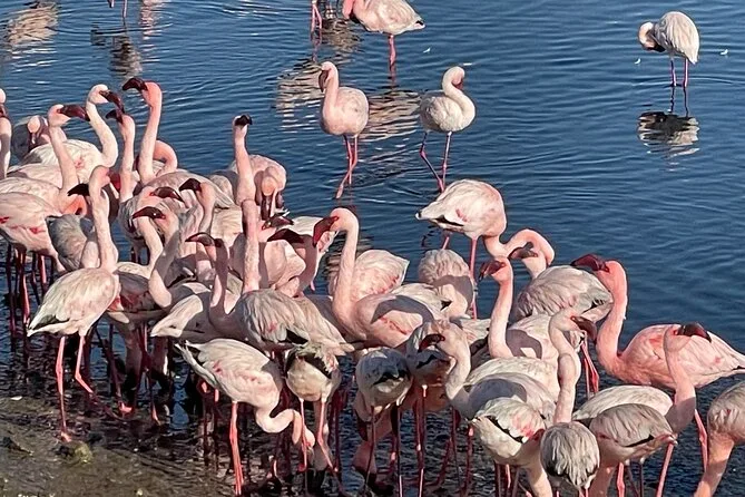 Você pode avistar flamingos, pelicanos, maçaricos, andorinhas-do-mar e outras aves nos pântanos de Walvis Bay.