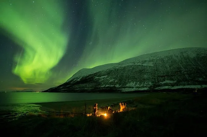 Você vai caçar as luzes do norte saindo de Tromso em grupo pequeno — às vezes cruzando para a Finlândia — guiado por locais que sabem onde o céu estará limpo. Roupas térmicas garantem conforto enquanto vocês compartilham histórias ao redor da fogueira com jantar (tem opção vegana). Prepare-se para momentos de silêncio e encanto sob a aurora — e sim, eles enviam fotos para você não perder nada.