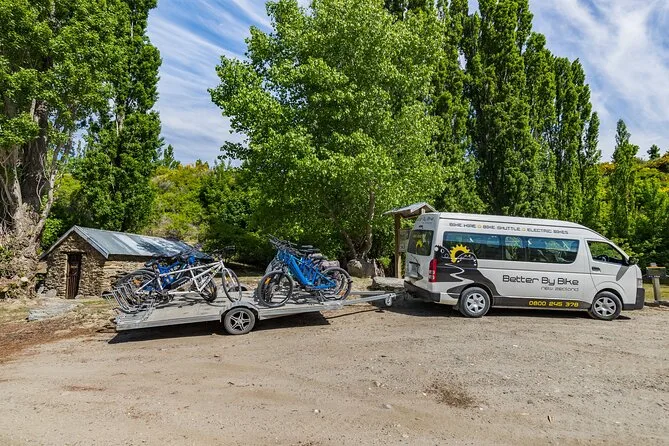 Seu dia inclui traslado privado de ida e volta entre Queenstown e Arrowtown (ou Gibbston com taxa extra), uso de uma e-bike francesa de alta qualidade ajustada para você com capacete e alforjes, mapa detalhado e orientação da equipe local antes de começar no seu ritmo — e sorrisos garantidos, mesmo que você não consiga pronunciar “Pinot Noir” direito.