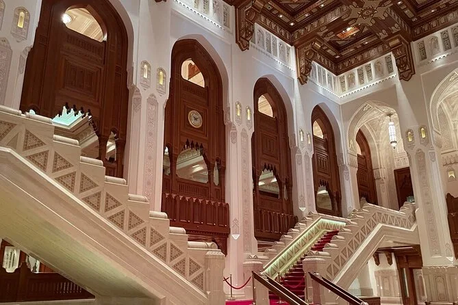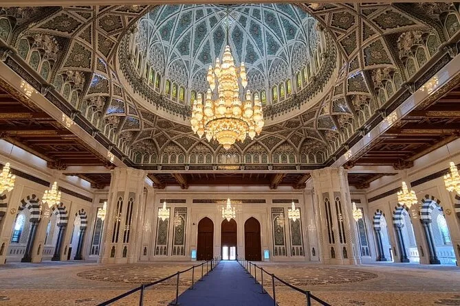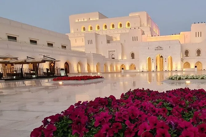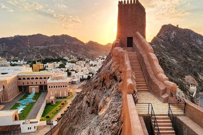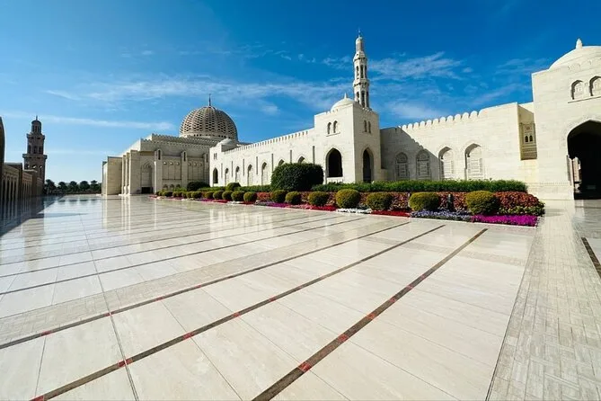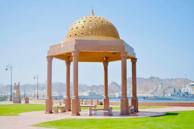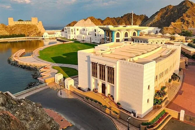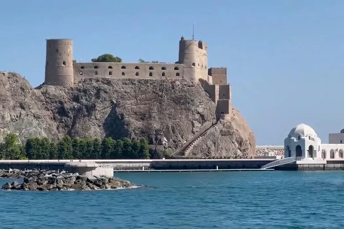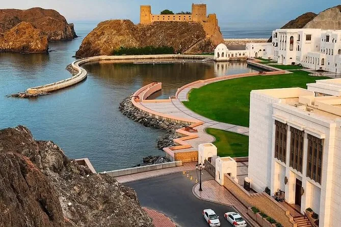 O roteiro inclui a Grande Mesquita Sultan Qaboos, área da Ópera Real, Praia de Qurum, Souk de Muttrah, Palácio Al Alam e os fortes Al Jalali e Al Mirani.