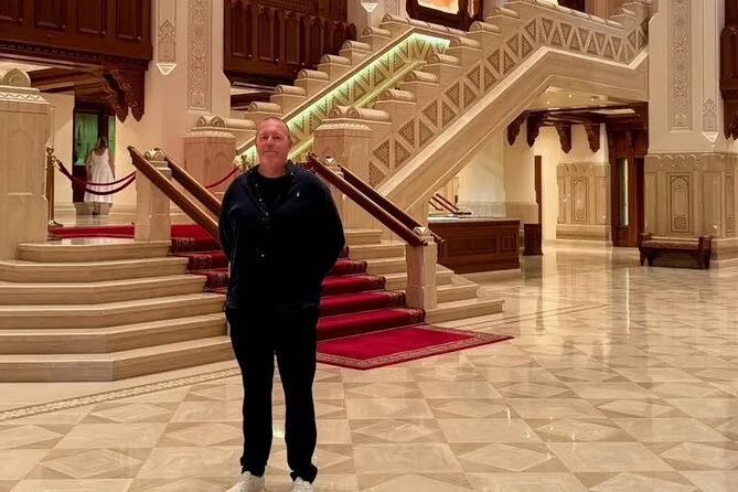 Você vai andar descalço na Grande Mesquita sobre mármore fresco, saborear chá karak doce na Praia de Qurum, se perder nos aromas e cores do Souk de Muttrah e ficar sob palácios reais e fortes antigos — tudo com um guia local que torna cada parada especial.