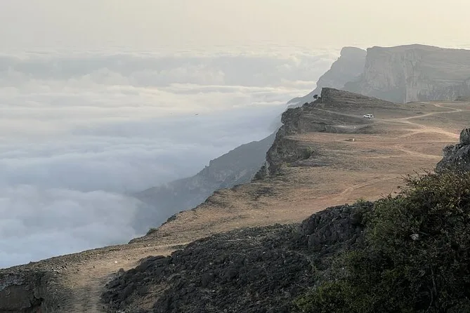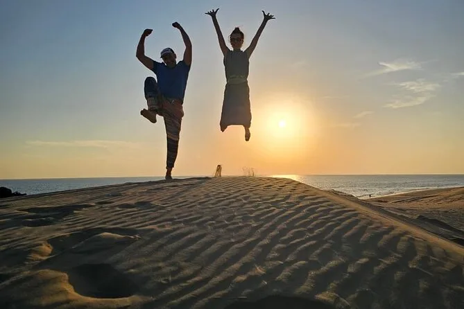 Você vai sentir os contrastes de Dhofar neste safari privativo: a pedra fria do antigo Castelo de Taqa, pássaros voando sobre praias brilhantes, o vale verde e cachoeiras do Wadi Darbat, o ar puro no topo do Jabal Samhan e, para fechar, as dunas douradas à beira-mar no pôr do sol. Risadas com seu guia omanense e momentos de pura beleza que vão ficar com você.
