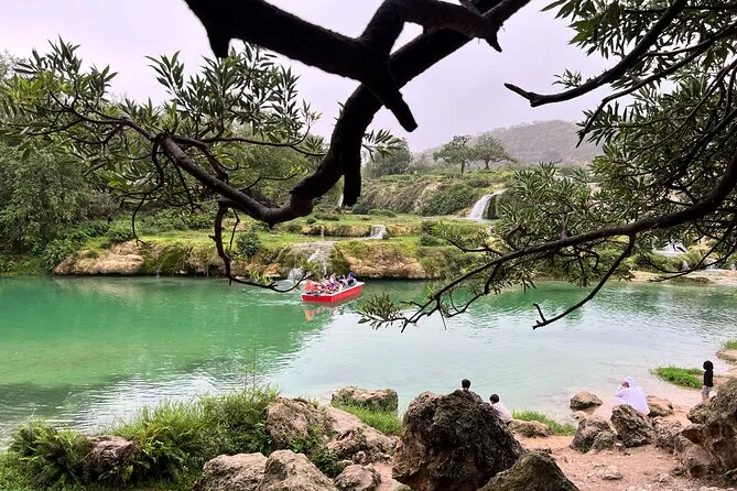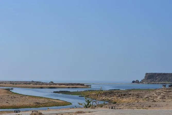 Seguimos para o leste pela costa, passando pela Casa Koofan (não entrei — gostei mesmo foi de ver os velhinhos tomando chá do lado de fora) e depois chegamos à Praia de Taqa. A água parecia azul demais para ser real, e os pássaros marinhos voavam rápido enquanto ficávamos com os pés enterrados na areia. Khalid apontou para o Burj Al Askar — tentei pronunciar direito, mas ele riu e disse para não me preocupar. Aí veio o Wadi Darbat: verde mesmo no fim do verão, com cabras passeando e aquele cheiro de grama molhada depois da chuva. Alugamos um pedalinho por meia hora (não incluso, mas vale muito a pena), deslizando sob a sombra do Jabal Qara enquanto crianças se divertiam na água perto. Se tiver sorte, vê uma cachoeira — a gente pegou só um fio d’água, mas já foi suficiente.