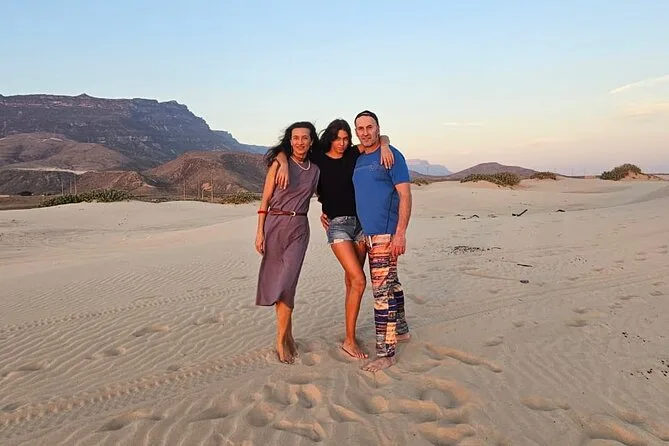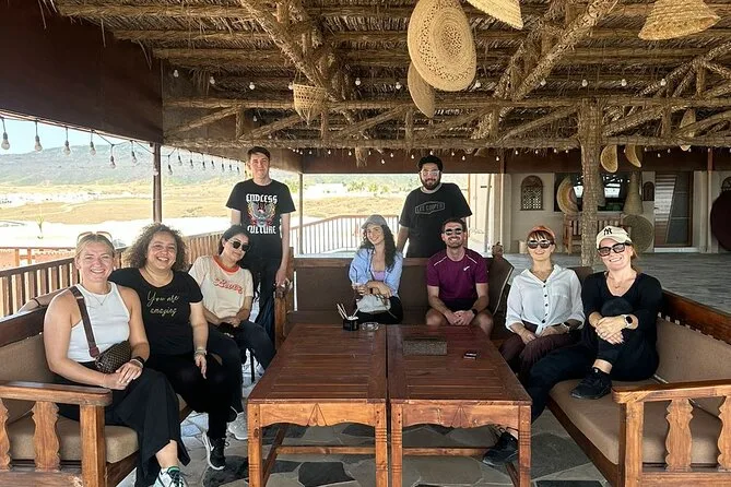 Seu dia inclui transporte privativo com ar-condicionado do hotel ou aeroporto em Salalah, acompanhado por um guia omanense experiente que fala inglês ou árabe (outros idiomas sob pedido, se disponíveis), todo o transporte entre os pontos como Castelo de Taqa, vale Wadi Darbat, pico do Jabal Samhan e dunas de areia de Mirbat, além de água engarrafada durante o passeio, retornando confortavelmente ao ponto inicial.