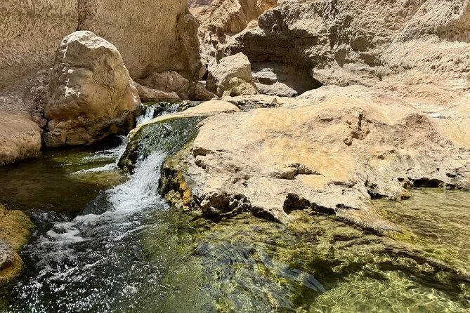 Seu dia inclui traslado em veículo com ar-condicionado saindo de Muscat, todas as taxas e impostos pagos, água mineral durante o passeio e um almoço tradicional em café local antes de voltar após a aventura cheia de nados.
