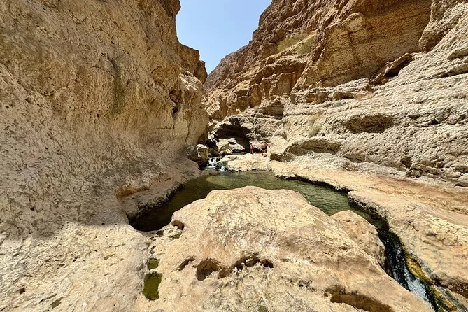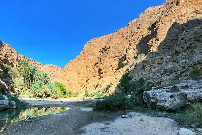 Você vai caminhar pelo cânion do Wadi Shab com um guia local, nadar em cavernas iluminadas pelo sol, almoçar num café simples (não deixe de provar o limão com hortelã) e terminar o dia admirando a água azul surreal do Bimmah Sinkhole. Prepare-se para risadas, momentos de paz e histórias para contar.