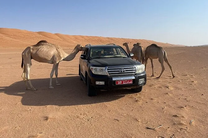 Você vai explorar vilarejos antigos perto de Fanja, nadar nas piscinas transparentes de Wadi Bani Khalid cercadas por falésias impressionantes, compartilhar café omanense com beduínos em Wahiba Sands e deslizar pelas dunas infinitas com seu guia local. Prepare-se para o sol na pele, risadas durante o passeio nas dunas e momentos de silêncio que ficam na memória.