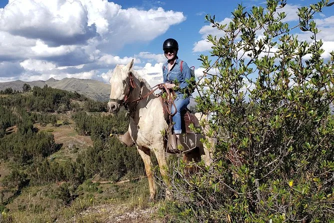 Seu dia inclui traslado privado do hotel em Cusco até o rancho e volta, todo o equipamento para montar (capacetes inclusos), cavalos bem cuidados e adequados ao seu nível, guia local profissional que compartilha histórias durante o trajeto, água mineral para manter você hidratado e um almoço simples em caixa para aproveitar ao ar livre antes do retorno à tarde.
