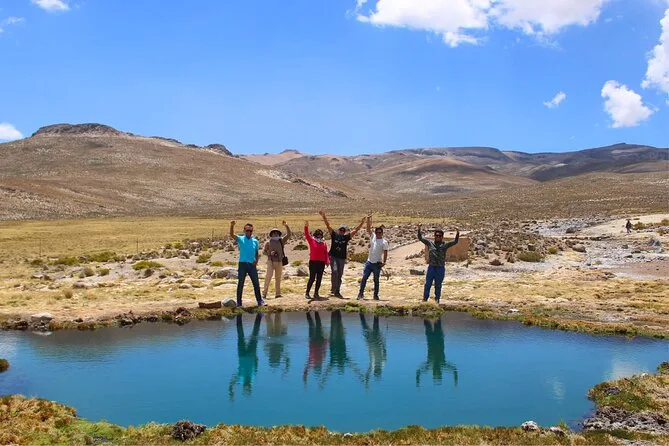 Passamos três horas dentro da Reserva Nacional Salinas e Aguada Blanca, parando em diferentes mirantes. Há um vulcão minúsculo ali — algo que você não espera — e é possível caminhar até a borda da cratera. O chão estava quente sob os pés, resultado de antigas lavações. Depois de tirar fotos e compartilhar um chá quente servido de uma garrafa térmica (o vento aumenta rápido), seguimos de volta para Arequipa. A viagem de retorno levou mais algumas horas; a maioria das pessoas cochilou ou ficou observando o sol se pôr atrás dos picos distantes.