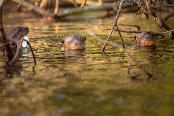 Você deve avistar macacos (prego, saguis), lontras gigantes no Lago Sandoval, papagaios nas beiradas de argila, tartarugas, borboletas—e, se tiver sorte, até jacarés ou antas.