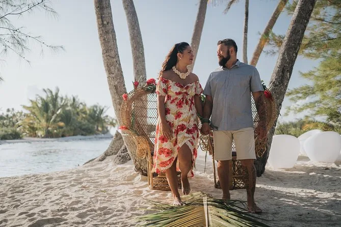 Seu dia inclui transporte ida e volta do hotel por barco, coquetéis de boas-vindas com música ao vivo de ukulele ao chegar no seu motu privado na lagoa de Bora Bora, almoço buffet tradicional polinésio preparado por chef local (com champagne ou vinho), petiscos durante o dia, uso do equipamento de snorkel para explorar jardins de corais próximos, além de redes e áreas sombreadas para relaxar antes do retorno à tarde.