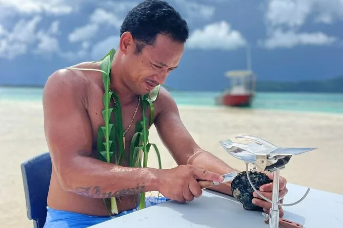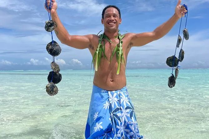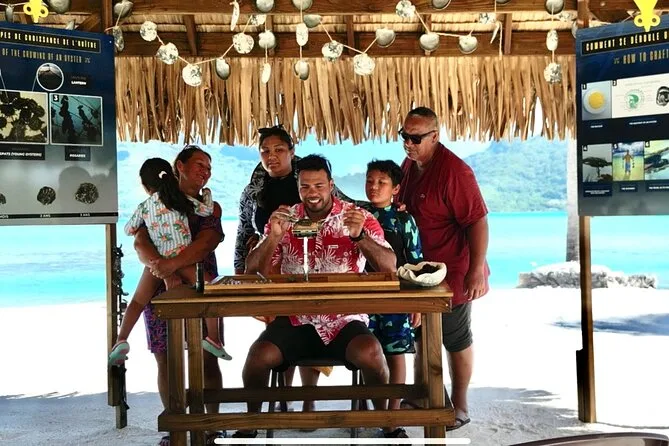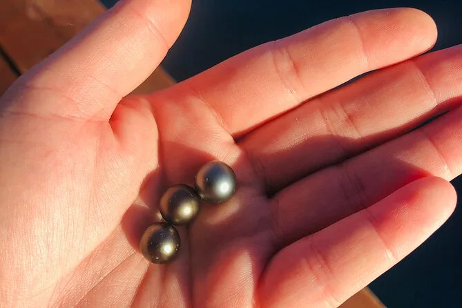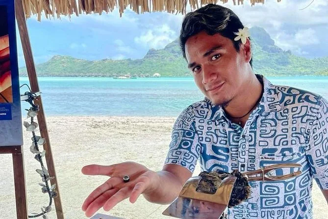 Seu dia inclui transporte de barco ida e volta do hotel ou cais de Vaitape, todas as taxas e entradas, uso de equipamento de snorkel e toalhas de praia, água engarrafada durante todo o passeio, além da pérola negra que você escolher—entregue em um pote de areia ou saquinho de veludo antes de voltar para casa.