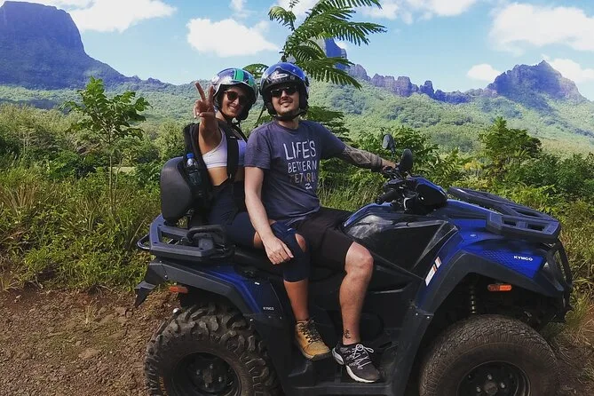 Seu dia inclui passeios guiados de jet ski pela Baía de Cook e Baía de Opunohu com paradas para nadar entre arraias e tubarões (se você for corajoso), além de uma aventura de ATV pelas plantações de abacaxi passando por uma escola agrícola até o Magic Mountain — tudo com um guia local que conta histórias durante o caminho.