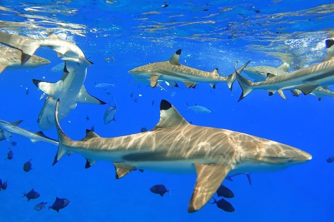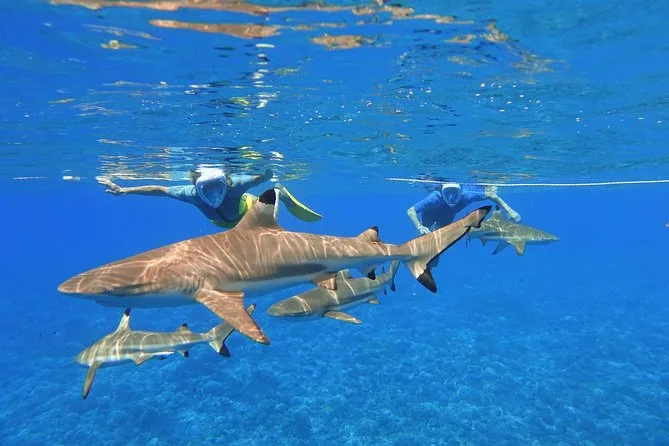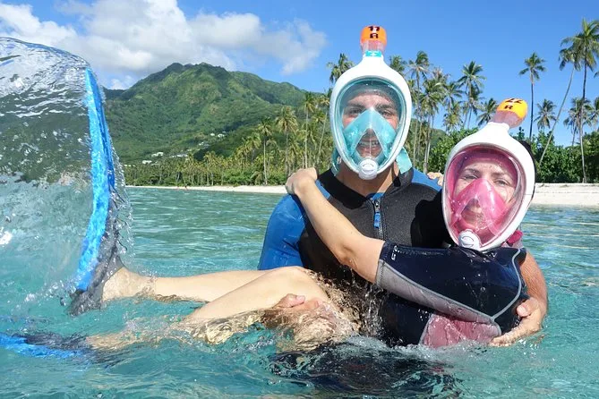 Deslize pelos recifes de Moorea de sea scooter com um guia local que conhece cada cantinho — arraias passando perto das mãos, tartarugas nadando tranquilas, corais brilhando lá embaixo. Grupos pequenos garantem mais espaço (e menos atrapalhadas). Transporte, equipamento e bebidas geladas estão incluídos — só traga sua vontade de aventura.