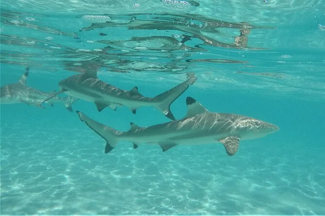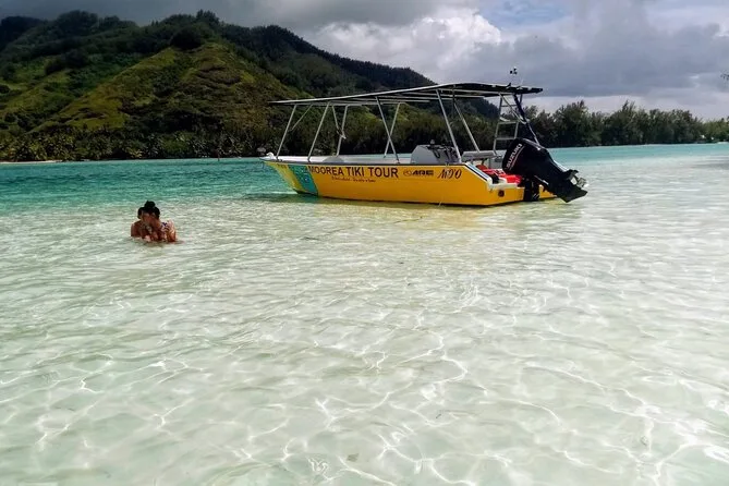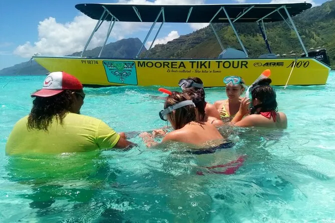 Seu dia inclui opções de transporte próximo ou estacionamento grátis se você for de carro, todo o equipamento para snorkel para explorar a lagoa e a vida marinha de Moorea, água mineral e refrigerantes durante o passeio, além de um almoço tranquilo servido na água rasa antes de voltarmos juntos para a praia.