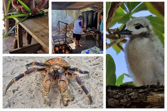Seu dia inclui traslado do cais às 8h30 (com horário flexível para passageiros de cruzeiros), passeio guiado de barco até a ilha privada da Blue Lagoon em Rangiroa, snorkel com tubarões, observação de golfinhos, caminhadas para ver pássaros, oficina prática de tranças e um almoço local com caranguejo coco e vinho de Rangiroa antes do retorno à tarde.