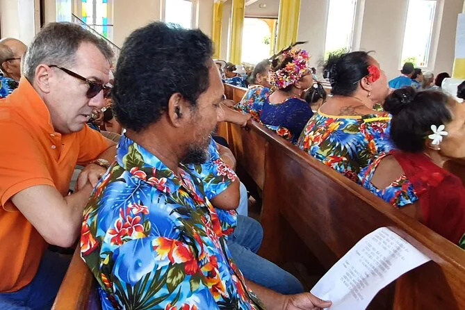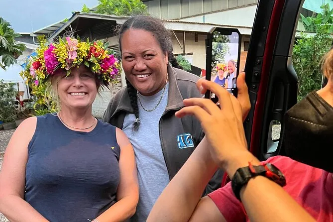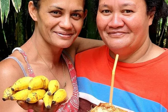 Seu dia inclui traslado do hotel ou porto na área de Papeete, água engarrafada durante todo o percurso, comentários ao vivo de um guia que fala inglês e conhece todas as histórias locais, transporte confortável em uma minivan Mercedes com ar-condicionado e poucos passageiros — além de muitas chances de conhecer gente da região antes do retorno ao ponto de partida.