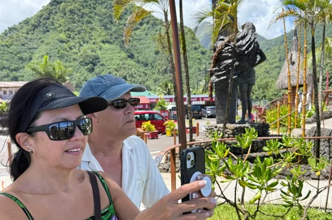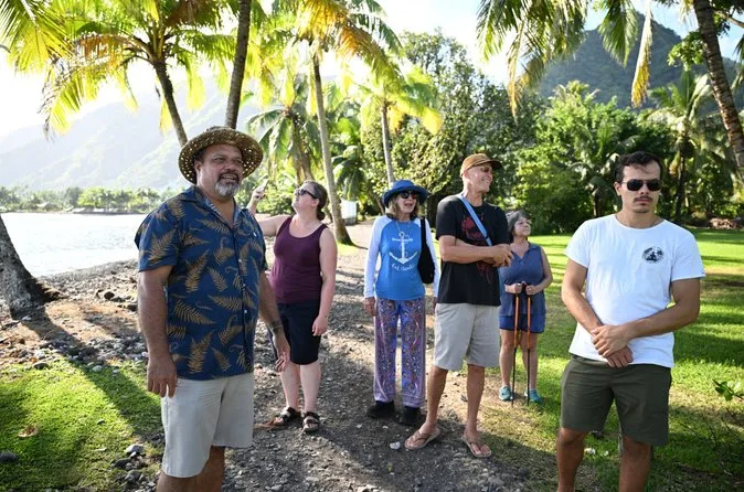 Seu dia inclui transporte de ida e volta nos principais hotéis de Papeete em uma van Mercedes com ar-condicionado e água mineral à disposição. Um guia profissional que fala inglês acompanha seu grupo pequeno (máximo 8 pessoas), cuidando de todo o transporte entre as paradas — das cachoeiras e praias de areia preta aos vilarejos locais — para que você aproveite cada momento da costa oeste do Tahiti.