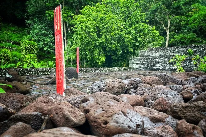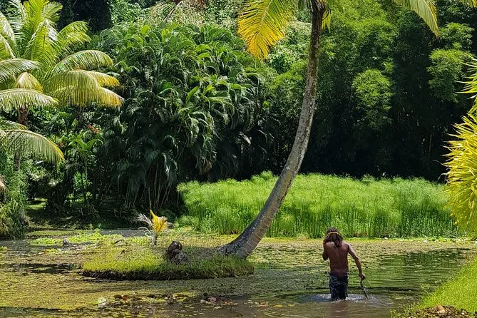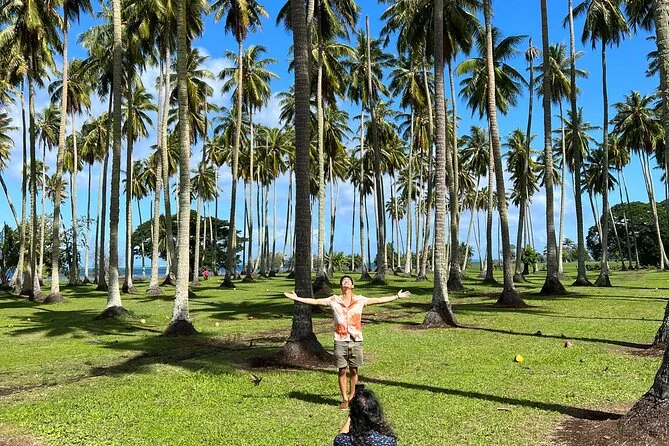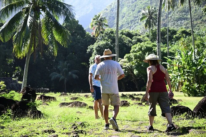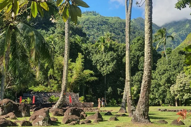 Você vai caminhar por vales musgosos entre Tikis antigos, sentir a areia preta das praias de Tahiti ao lado de surfistas e pescadores, provar frutas frescas direto de vendedores locais e rir com moradores que viram amigos no fim do dia. Espere mergulhos em grutas frescas e momentos tranquilos em jardins floridos—um dia que fica na memória muito depois de acabar.