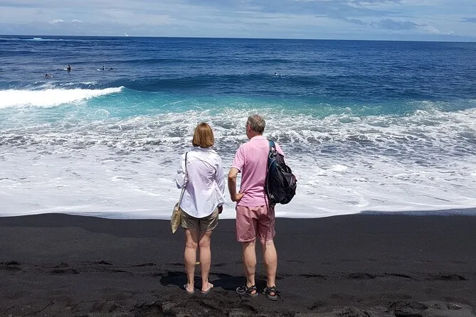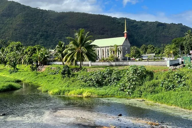Você visitará templos antigos, praias de areia preta, grutas com água, jardins com cachoeiras e vilas locais na costa oeste de Tahiti.