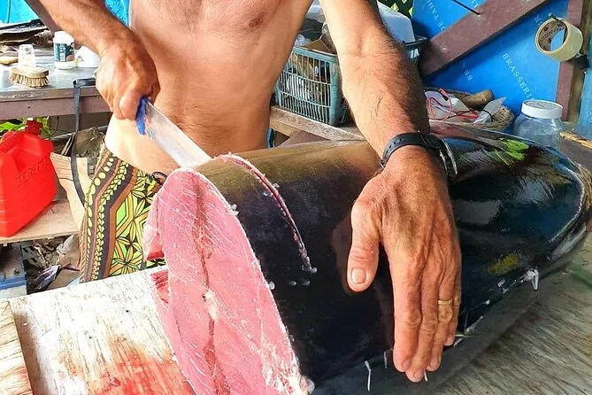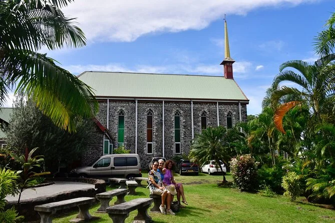Confesso que não esperava me interessar por uma parada na igreja, mas entrar naquele lugar com 160 anos, enquanto mulheres arrumavam flores e brincavam em taitiano, foi como cair numa reunião de família—daquelas boas. Um cheiro doce vinha do forno subterrâneo onde cozinhavam o almoço (infelizmente, não para nós). O último momento foi aprender como se faz o óleo Monoi num laboratório pequenino—meus dedos ainda têm um leve cheiro de coco dias depois.