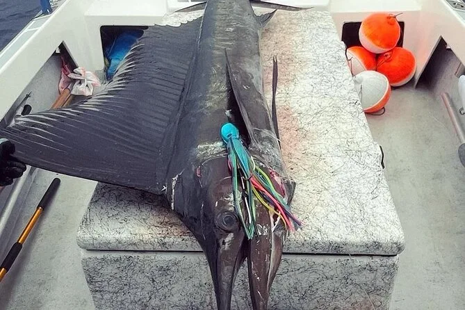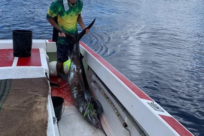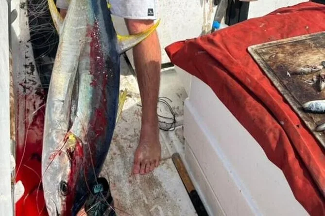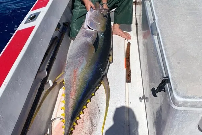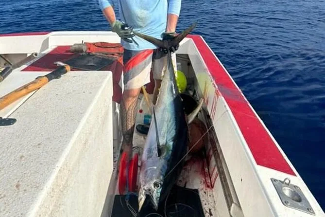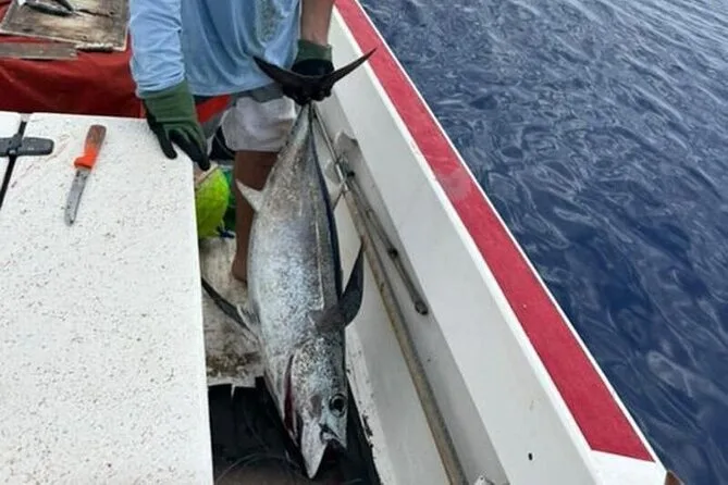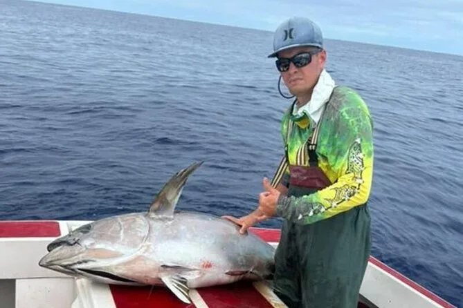 Você pode pegar bonitos, atum, mahi-mahi (às vezes com arpão) ou peixes voadores, dependendo da época e da sorte.