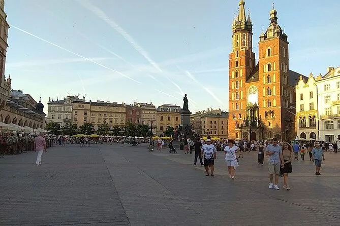 Seu dia começa encontrando o guia local bem na Basílica de Santa Maria, na praça principal de Krakow, antes de seguir pelas ruas históricas da Cidade Antiga. Você vai visitar pontos como o Portão Barbican, Universidade Jaguelônica, Mercado da Hall Cloth para um lanche, e depois subir para explorar os terrenos do Castelo Real de Wawel e sua catedral — tudo num ritmo tranquilo, terminando perto do Palácio do Bispo. Não precisa comprar ingressos extras; só traga sapatos confortáveis e vontade de descobrir.