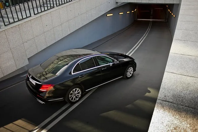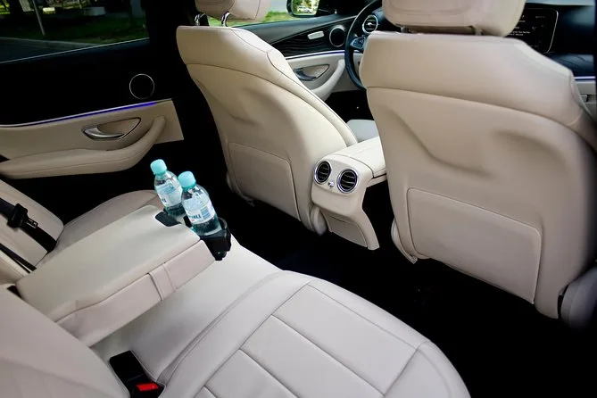Sua viagem inclui transporte privado em um moderno sedã Mercedes E Class, WiFi gratuito a bordo, água mineral para manter você hidratado, ar-condicionado para seu conforto e cadeirinhas para crianças, se precisar — é só avisar com antecedência.