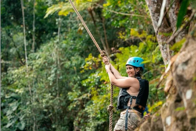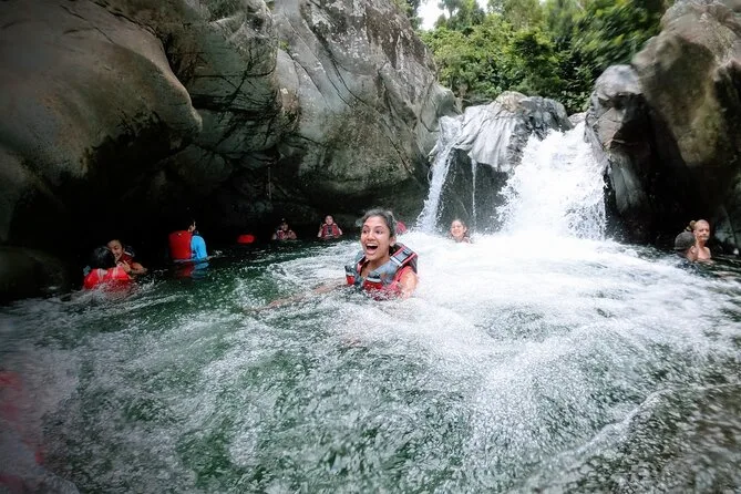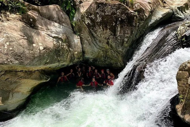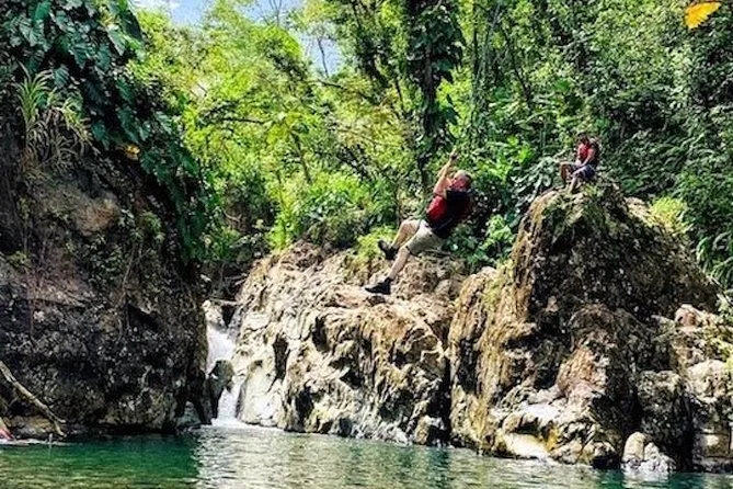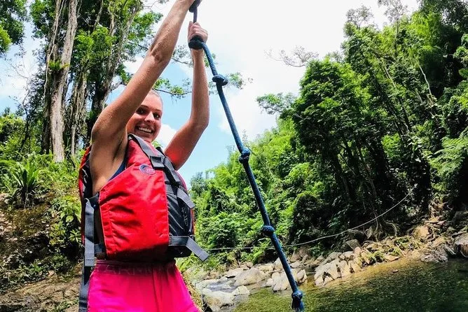Seu dia inclui entrada na floresta El Yunque, todo equipamento necessário para as atividades aquáticas como tobogãs e balanços de corda, instruções de segurança com guia local certificado (salva-vidas e treinado em CPR), frutas frescas e bebidas durante a pausa no rio — e até fotos da sua aventura para guardar de lembrança. Você precisará dirigir até lá com um carro alugado antes de se encontrar no ponto de partida.
