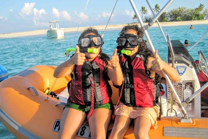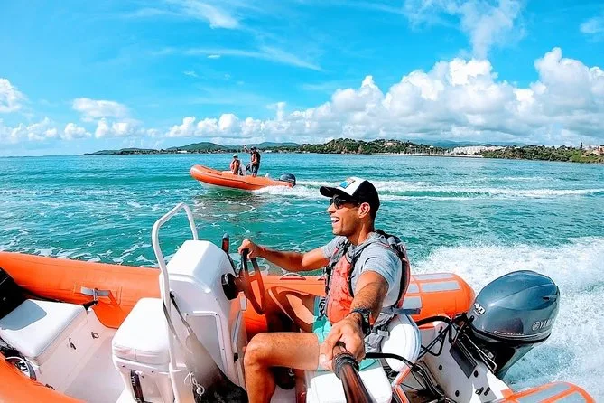 Seu dia inclui pilotar seu próprio mini barco de 13 pés com motor Yamaha 40hp pelos cayos de Puerto Rico, guiado por locais, com todo equipamento de snorkel e colete salva-vidas aprovado pela USCG. Paradas em praias isoladas de areia branca como a Ilha Icacos para sessões guiadas de snorkel entre corais e peixes tropicais, além de cooler com lanches e bebidas geladas a bordo. Na volta, acesso a chuveiros e banheiros privativos na marina.