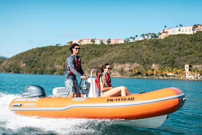 Você vai pilotar seu próprio mini barco saindo de Fajardo pela costa leste de Puerto Rico, guiado por um local. Mergulhe nos recifes da Ilha Icacos, relaxe nas praias de areia macia de Palominitos e aproveite lanches direto no barco—todo equipamento incluso. Um dia de cabelo salgado e pele aquecida pelo sol que você vai lembrar por muito tempo.