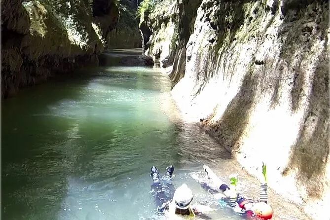 O body rafting era a parte que eu achava que ia me assustar mais. Mas foi mais... tranquilo? Você só vai flutuando junto com o grupo, olhando para os penhascos que te fazem sentir minúsculo. Às vezes esbarrava numa pedra ou no amigo por acidente (desculpa de novo, Marta), mas no geral o silêncio era só quebrado pelo som da água e dos pássaros. Depois teve almoço numa casinha na montanha — sanduíches simples nunca pareceram tão deliciosos depois de três horas em movimento. Alguém passou bebidas geladas; peguei uma cerveja local sem pensar duas vezes.