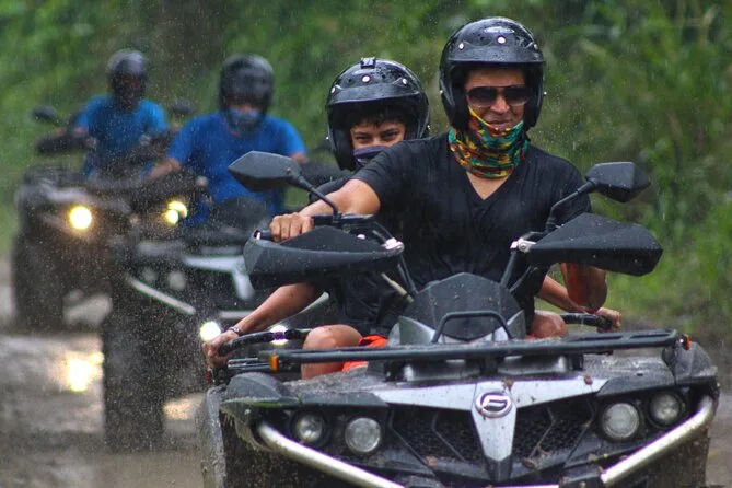 Seu dia inclui o uso de um ATV para dois, capacetes para segurança, acompanhamento de equipe local experiente durante as trilhas cênicas perto de San Juan, e todos os impostos locais necessários; após o passeio, você pode relaxar ou comprar bebidas no Mojito Bar da Hacienda Campo Rico antes de seguir viagem.