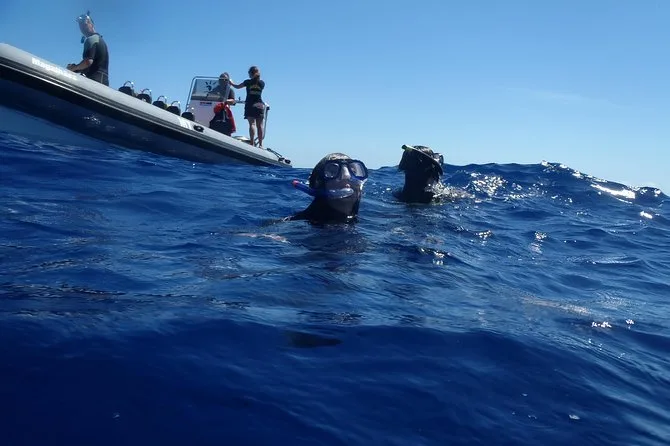 Seu dia inclui orientação de biólogos marinhos, uso completo do equipamento de snorkel e supervisão cuidadosa durante toda a experiência no mar, retornando à marina de Ponta Delgada após o encontro com os golfinhos.