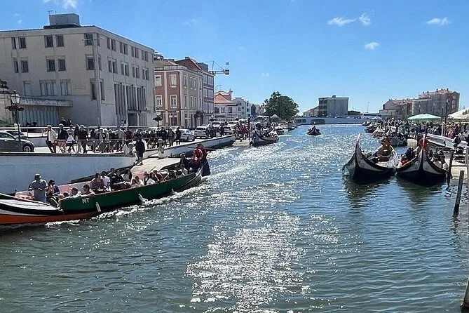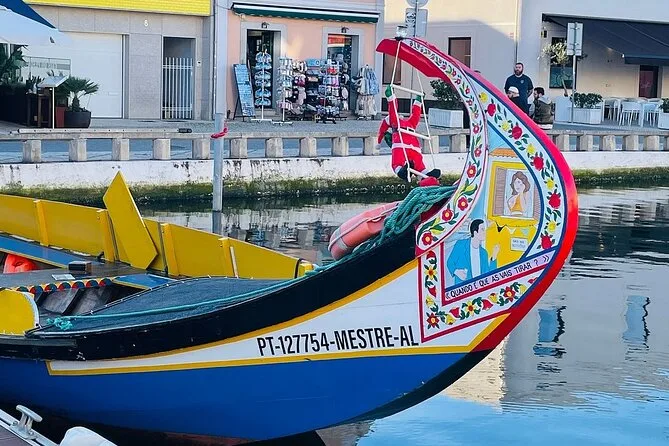 O passeio pelo canal em um tradicional barco Moliceiro faz parte da experiência do tour.