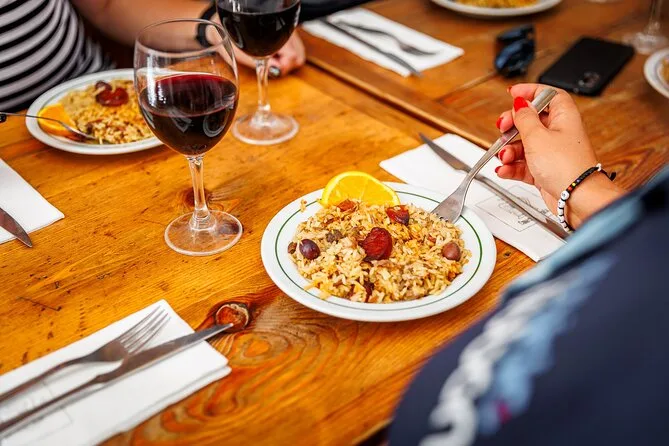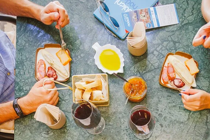 O seu dia inclui um passeio guiado a pé pela Baixa de Lisboa com seis paradas para degustar mais de 15 amostras da culinária e vinhos portugueses — bolinhos de bacalhau, sanduíches de bifana com cerveja, queijos, azeitonas e licor Ginjinha — além de dicas exclusivas do seu guia local sobre onde comer durante a sua estadia. Opções vegetarianas e sem glúten podem estar disponíveis, mas não são garantidas em todos os locais.