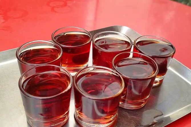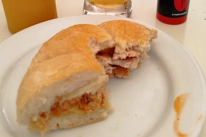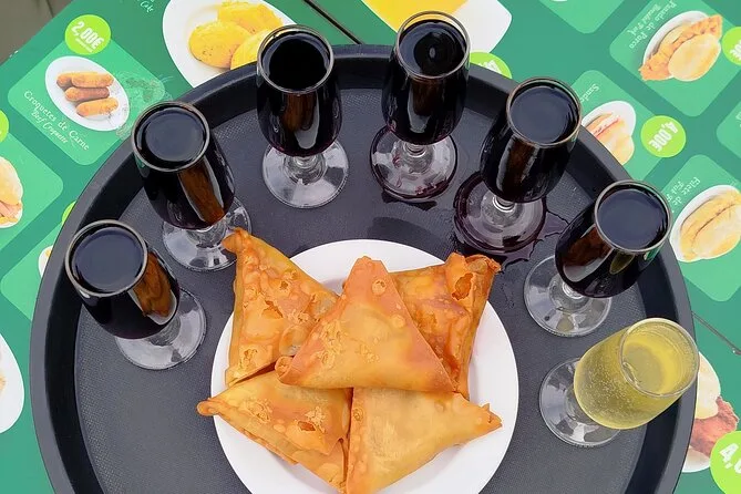 Seu dia inclui 14 petiscos típicos portugueses harmonizados com vinhos e bebidas locais: bolinho de bacalhau com vinho verde, samosa com vinho tinto, vinho do Porto com marmelada, pão broa, presunto e queijo; sanduíche de bifana com cerveja; licor de ginjinha; além de café e doce — tudo guiado por um local enquanto você caminha pelo centro e Mouraria em Lisboa.