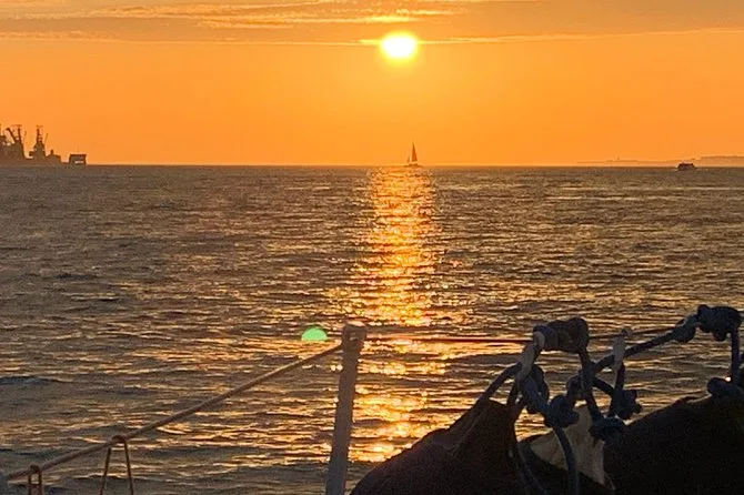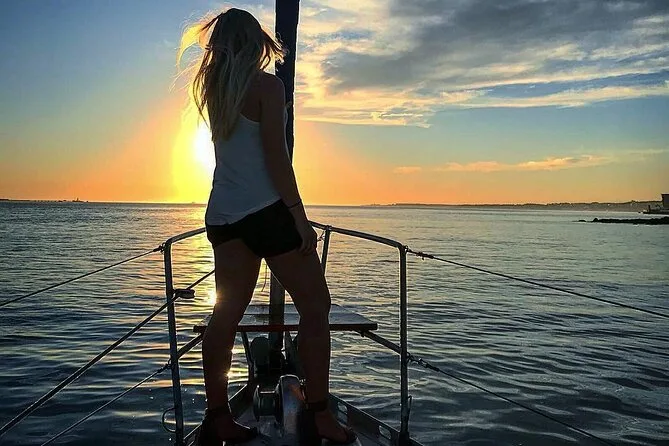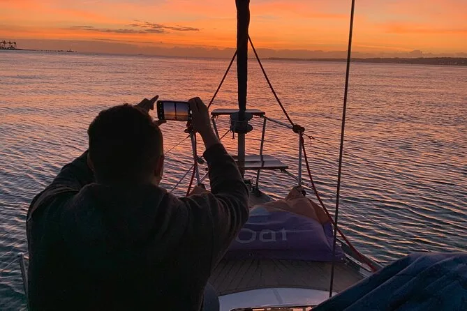 Você vai navegar pelo rio Tejo em Lisboa ao pôr do sol, guiado por um skipper local, passando pela Torre de Belém, Mosteiro dos Jerónimos e sob a Ponte 25 de Abril. Deguste vinho português enquanto as luzes da cidade acendem e as cores mudam no horizonte — tudo isso em grupo pequeno, com tempo para relaxar e curtir o momento.