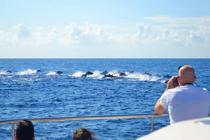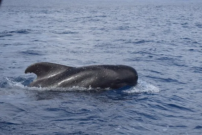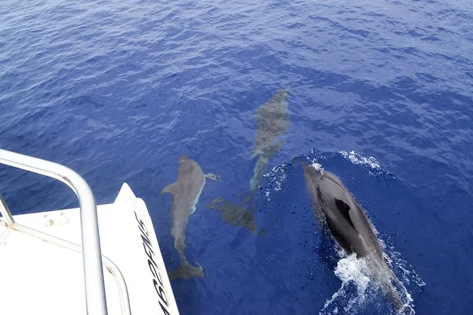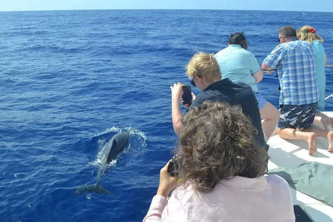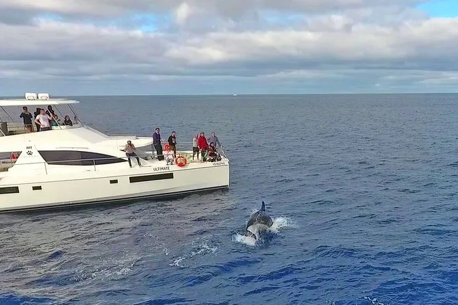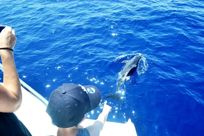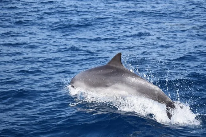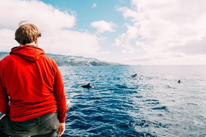 O iate sai direto da marina de Funchal; os avistamentos começam logo após a saída do porto.