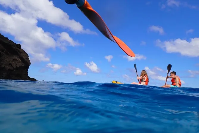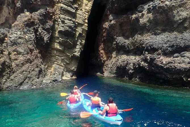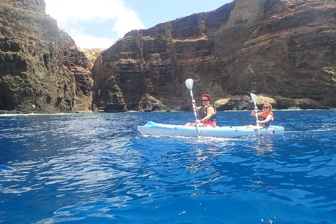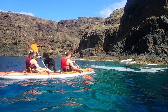 Remar pela costa impressionante de Porto Santo de caiaque com um guia local, chegando perto de galerias vulcânicas e praias tranquilas como Cal Islet ou Zimbralinho. Prepare-se para o ar salgado, risadas por remar torto e momentos na areia quente. Ideal para iniciantes e famílias — só traga a curiosidade para o que vem depois da próxima curva.