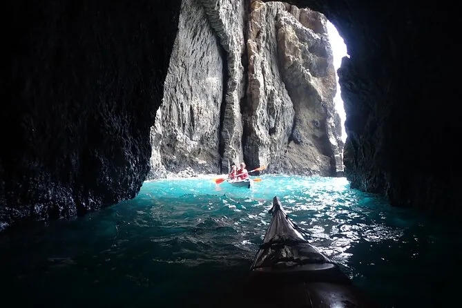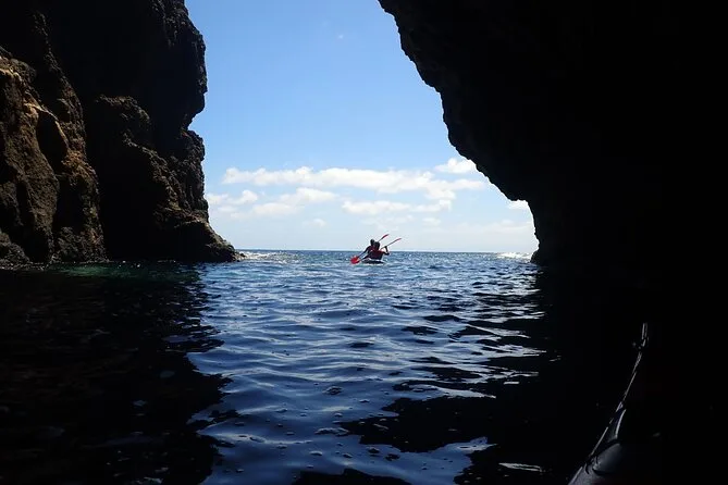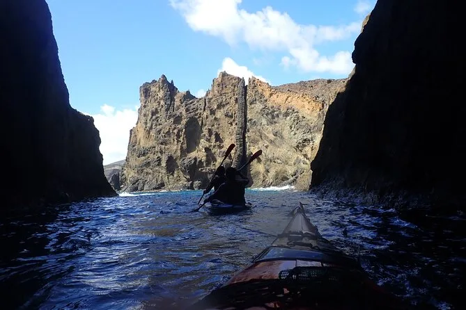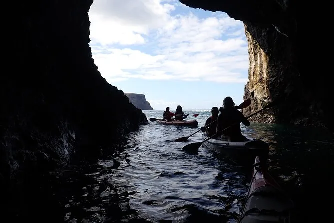 Descubra as cavernas e ilhotas selvagens de Porto Santo de caiaque saindo da Praia da Calheta