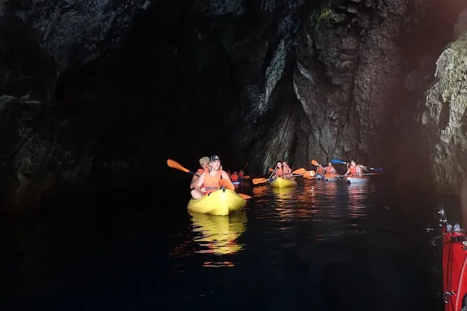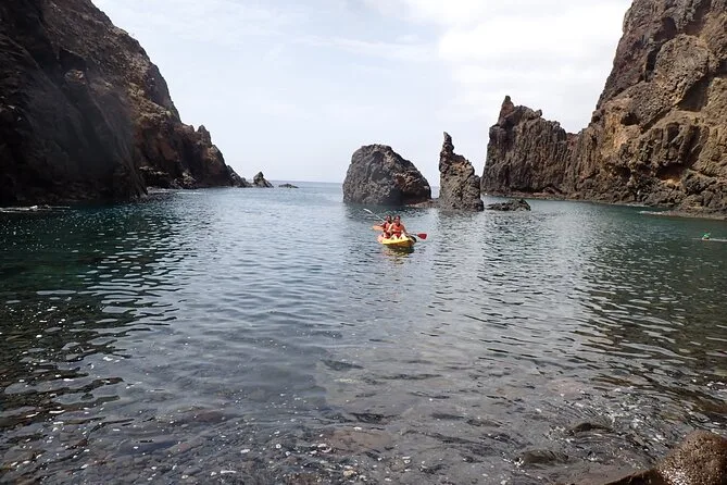 Seu dia inclui todo o equipamento para caiaque — caiaque, remo, colete salva-vidas — e seguro, enquanto você explora com um guia local experiente saindo da Praia da Calheta rumo ao Cal Islet ou à Praia do Zimbralinho antes de voltar juntos para a praia.