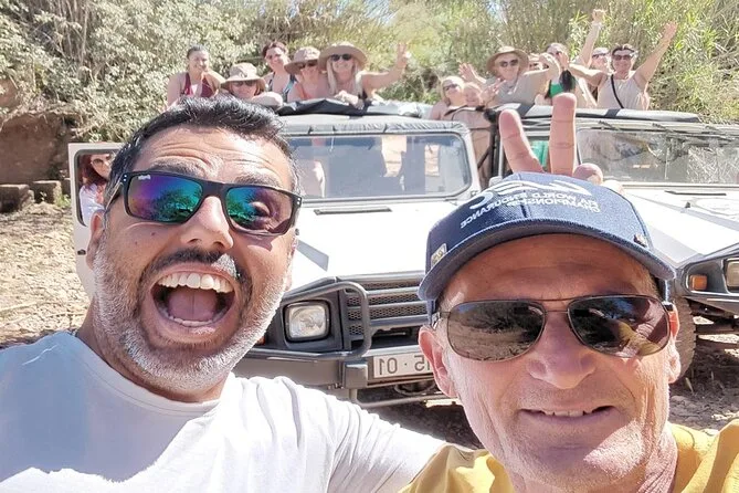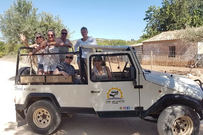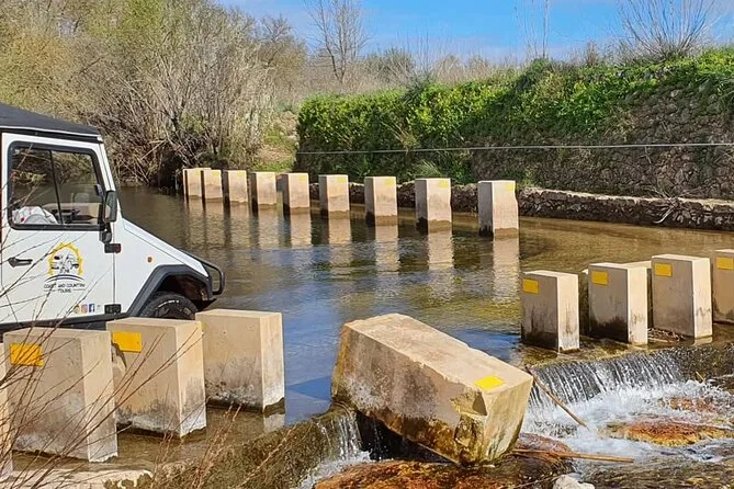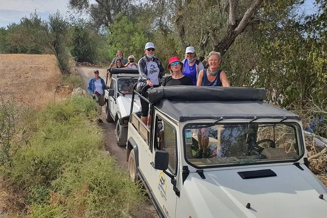 Seu meio dia inclui transporte em jeep aberto compartilhado, com cobertura para chuva se precisar, um guia experiente que conta histórias locais, paradas no Castelo de Paderne (exterior), visitas a aldeias tradicionais do Algarve como Paderne e Alte, degustação de mel e medronho numa fazenda familiar—sem pressão para comprar—e tempo para nadar nas nascentes do rio Alte, se a água permitir, antes de voltar para Albufeira.
