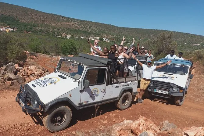Você vai rodar fora de estrada pelas colinas do Algarve num jeep aberto com guia local, visitar o Castelo de Paderne (quando aberto), provar mel e medronho numa fazenda familiar, passear por vilarejos tranquilos e—se tiver água—mergulhar nas frescas nascentes do rio Alte. Prepare-se para poeira nos sapatos, histórias do guia e a sensação de estar longe do litoral por um tempo.