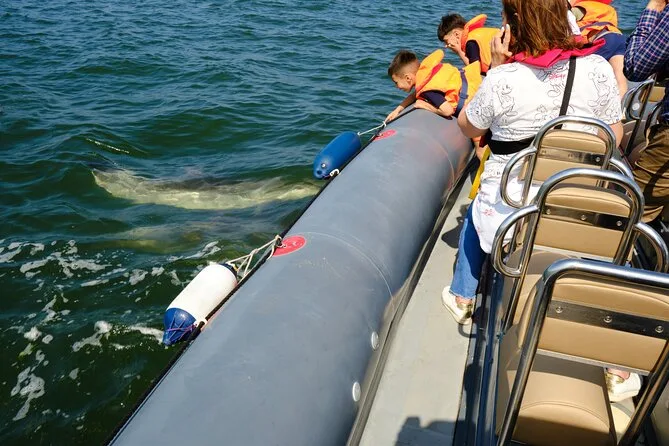 Seu dia inclui um passeio de barco rápido saindo de Setúbal com um skipper local experiente, navegando pela foz do Rio Sado para buscar golfinhos-rotadores e golfinhos-comuns no habitat natural. Além disso, você terá ótimas oportunidades de ver de perto enquanto passa pelas praias e falésias da Arrábida antes de voltar ao porto.
