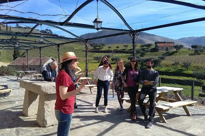 Seu dia inclui pickup no Porto (se selecionado), transporte em veículo com ar-condicionado e WiFi grátis, visitas a três vinícolas distintas do Vale do Douro com degustações guiadas de vinhos variados (incluindo Porto), amostras de mel e azeite em algumas paradas, além de um almoço tradicional português de quatro pratos numa vinícola familiar antes do retorno à noite.