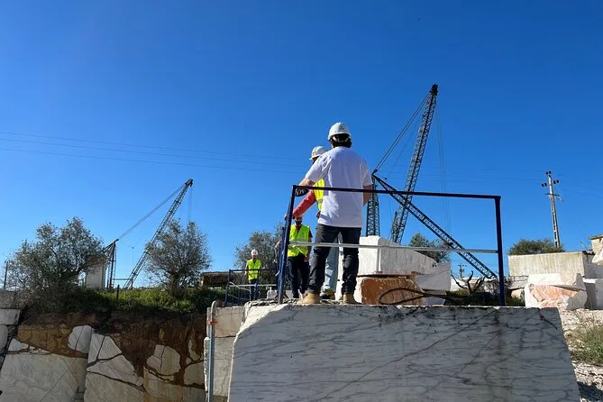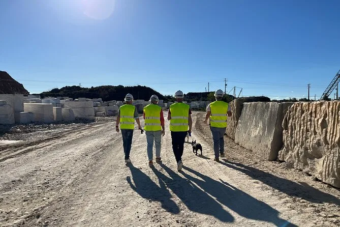 Seu dia inclui visitas guiadas às pedreiras em atividade perto de Vila Viçosa e Borba, além de entrada nas serrarias industriais e oficinas artesanais; todos os equipamentos de segurança, como capacete e colete, são fornecidos para uso durante as paradas e devem ser devolvidos ao final.